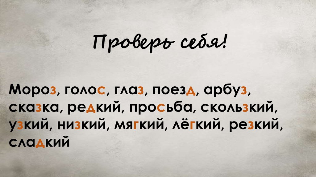 Проверь себя!Мороз, голос, глаз, поезд, арбуз,