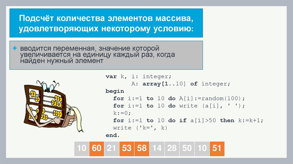 При подсчёте элементов, удовлетворяющих условию, используется переменная,