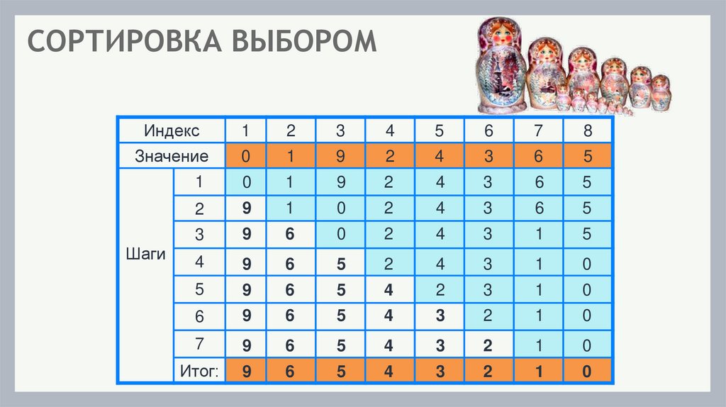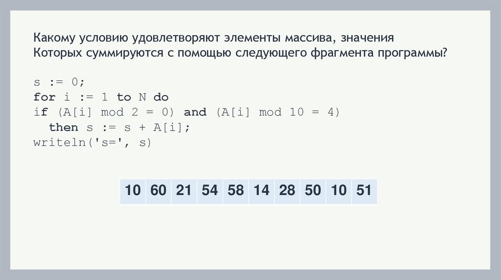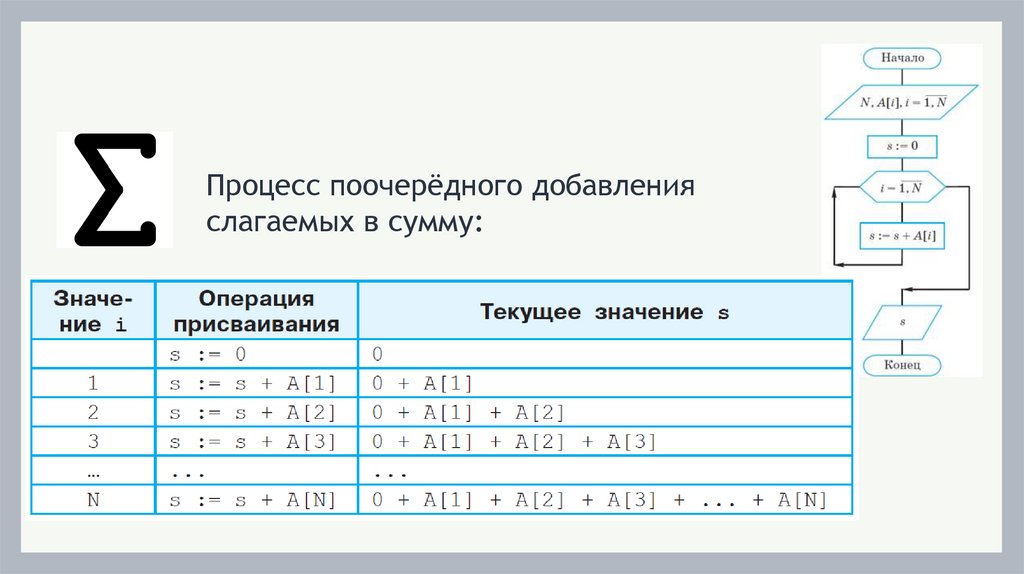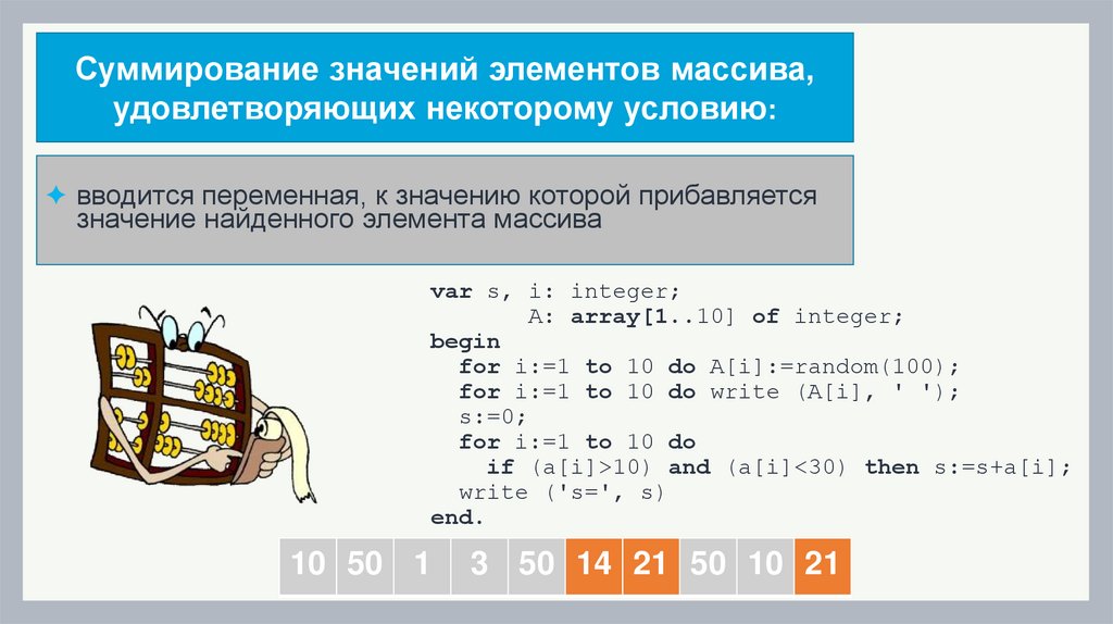 используются такие типовые алгоритмы, как суммирование элементов массива,