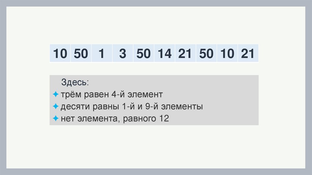 общее имя. Каждый элемент массива имеет свой номер (индекс).