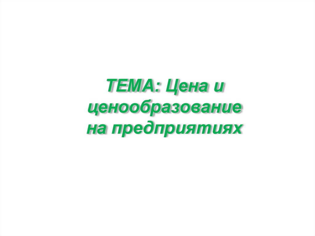 ТЕМА: Цена иценообразование