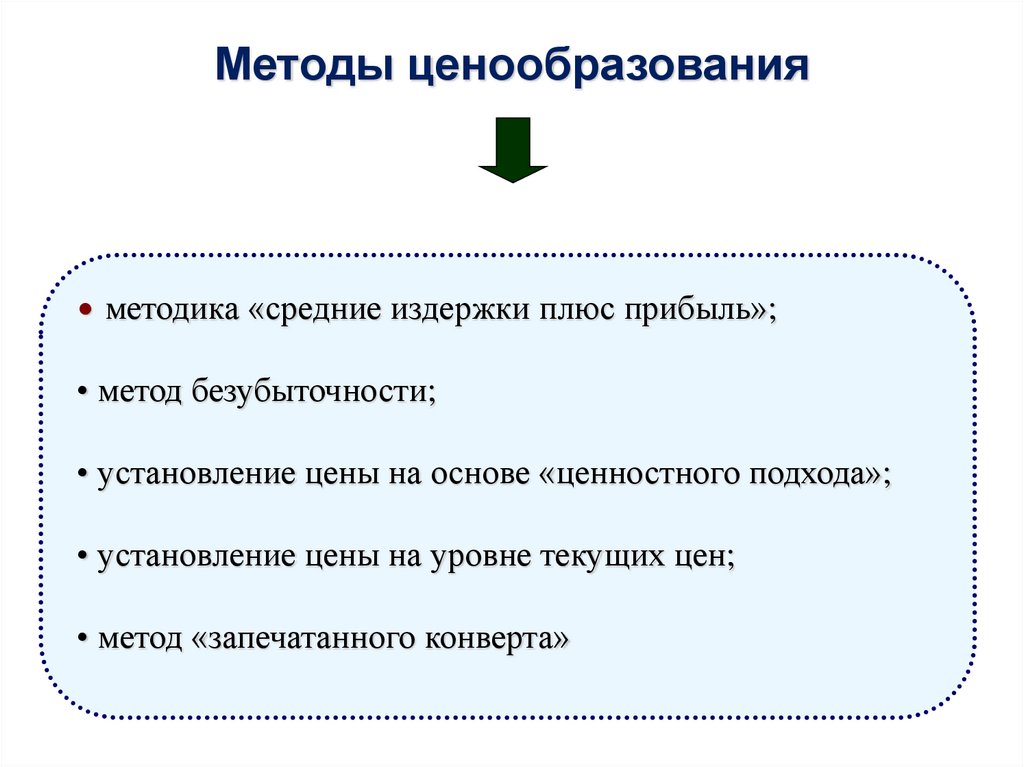 ценообразования;