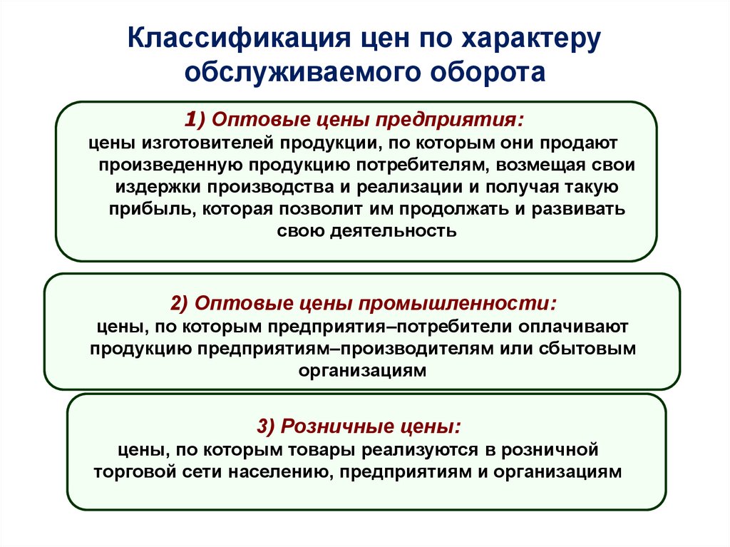 Классификация цен по характеруобслуживаемого оборота