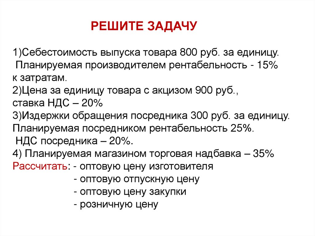 РЕШИТЕ ЗАДАЧУ1)Себестоимость выпуска товара 800 руб. за единицу.