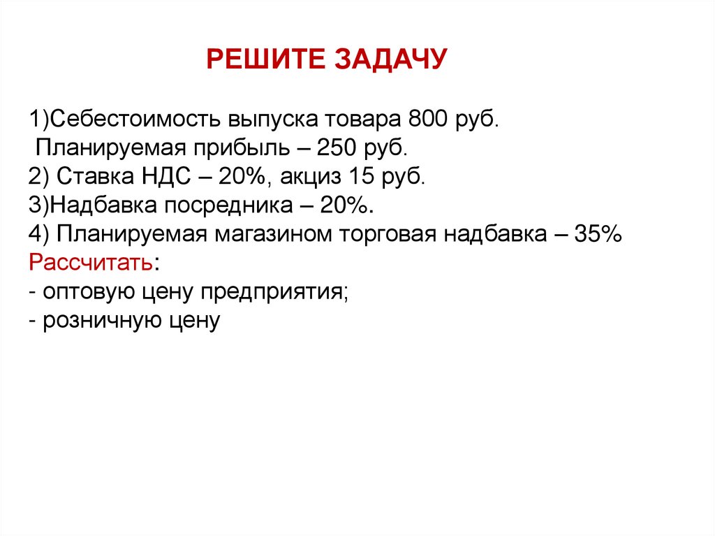 РЕШИТЕ ЗАДАЧУ1)Себестоимость выпуска товара 800 руб.