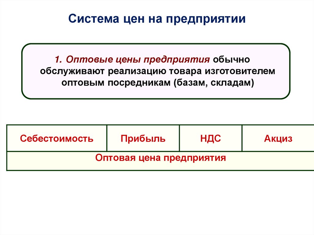 Система цен на предприятии1. Оптовые цены предприятия обычно