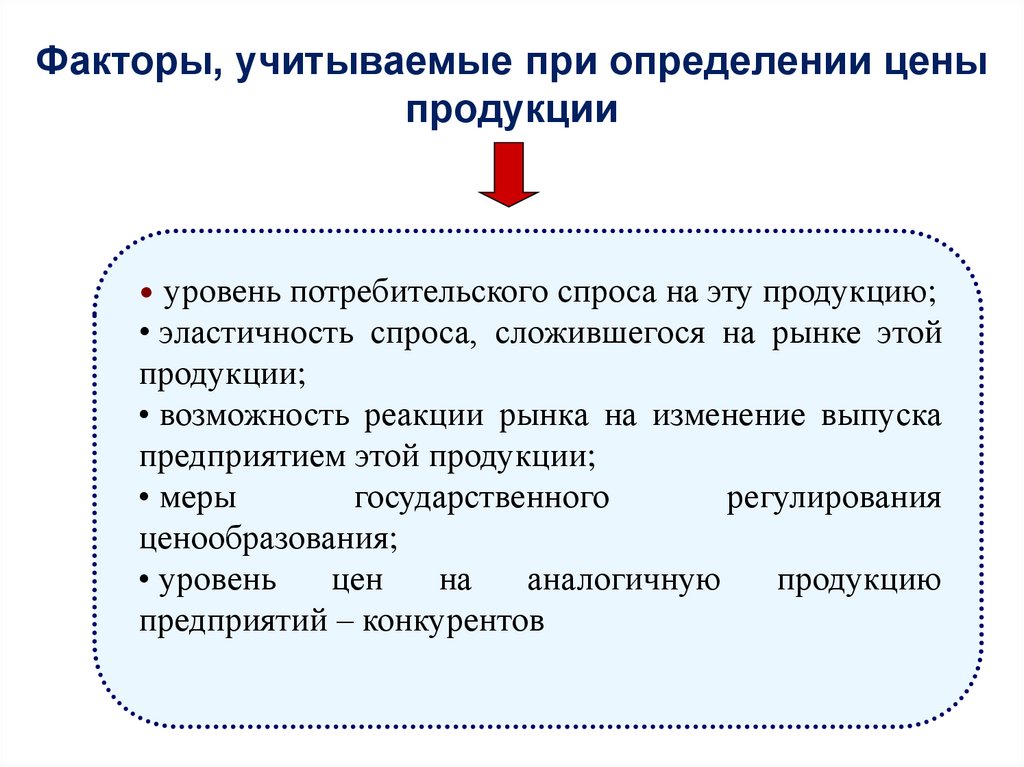 Факторы, учитываемые при определении ценыпродукции