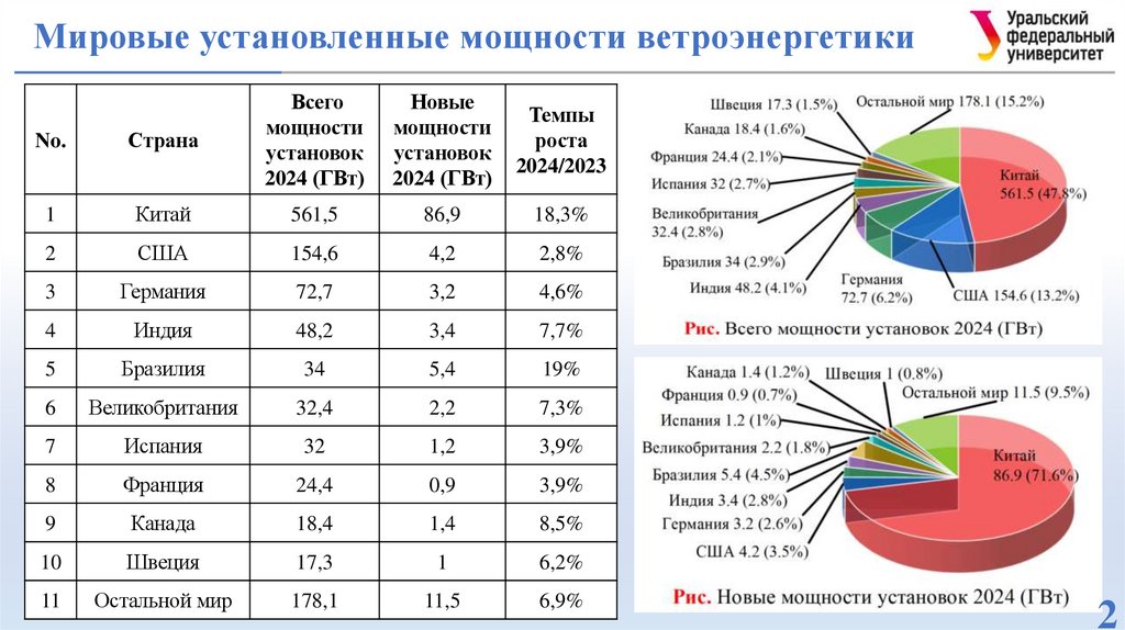 Мировые установленные мощности ветроэнергетикиNo.