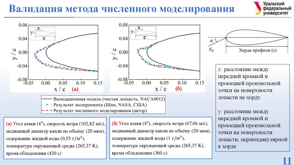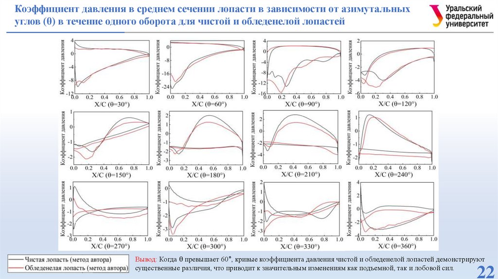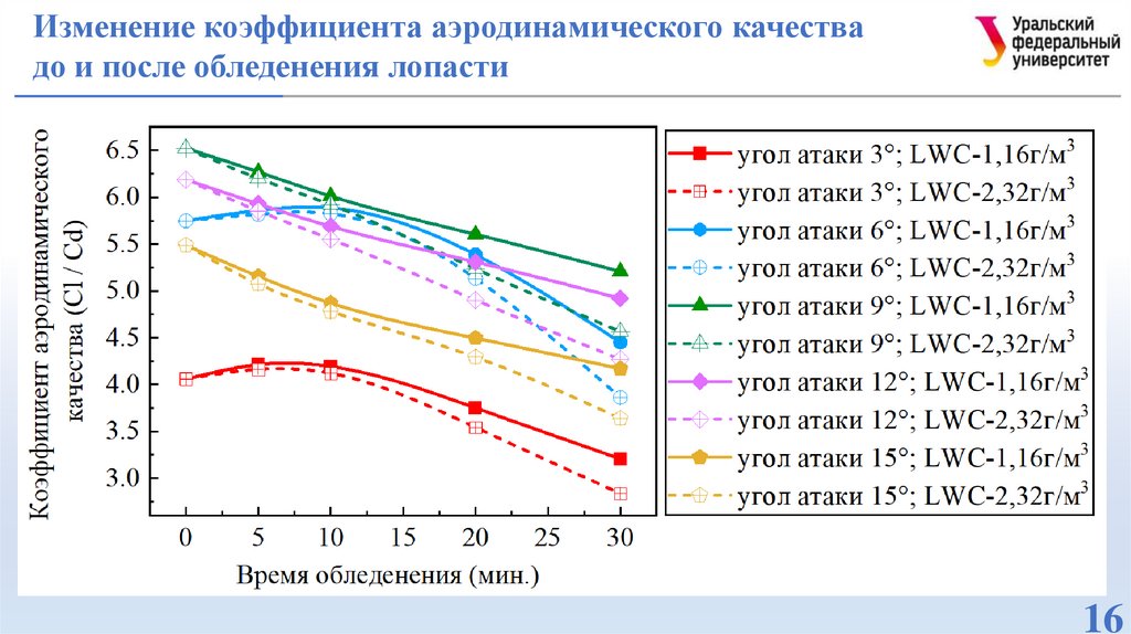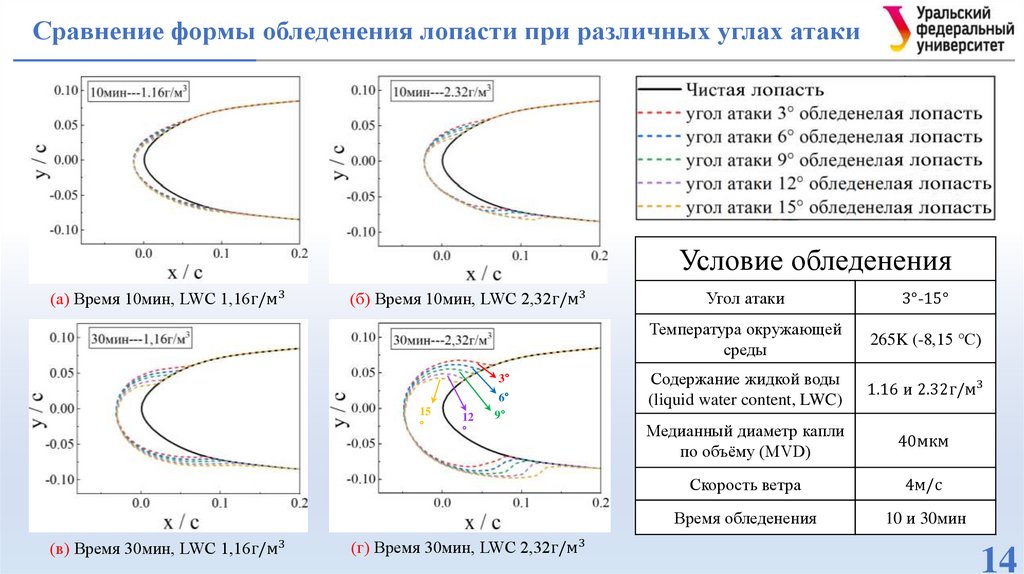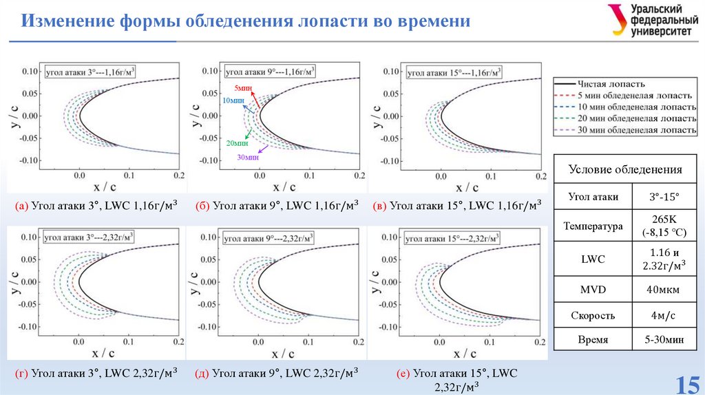 лопастей в условиях обледенения при различных углах атаки.