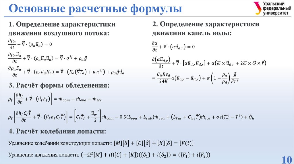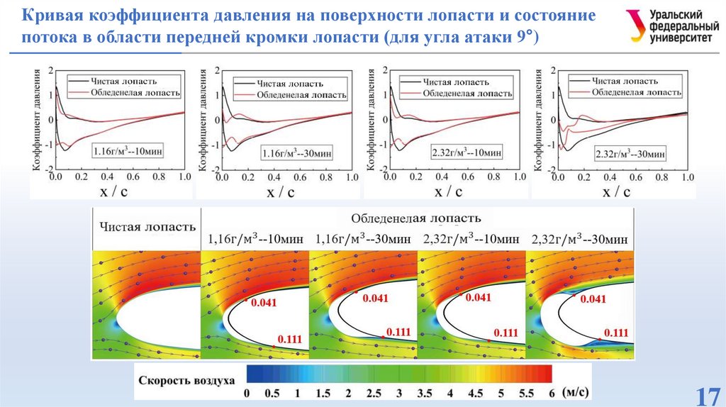 улавливания капель, формы обледенения, коэффициент давления, контур скорости.
