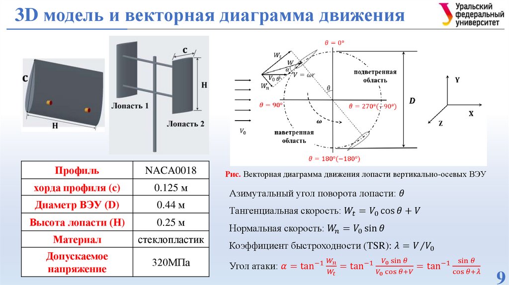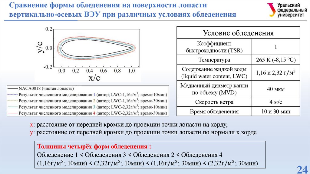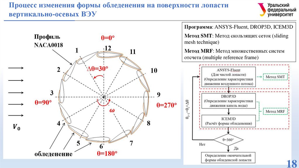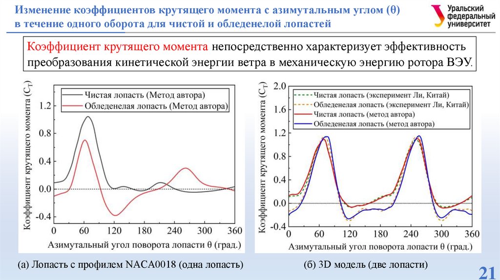 вертикально-осевых ВЭУ в условиях обледенения и при различных углах атаки, включая