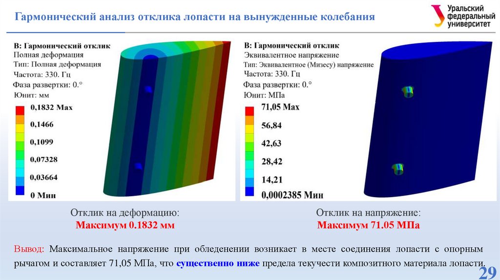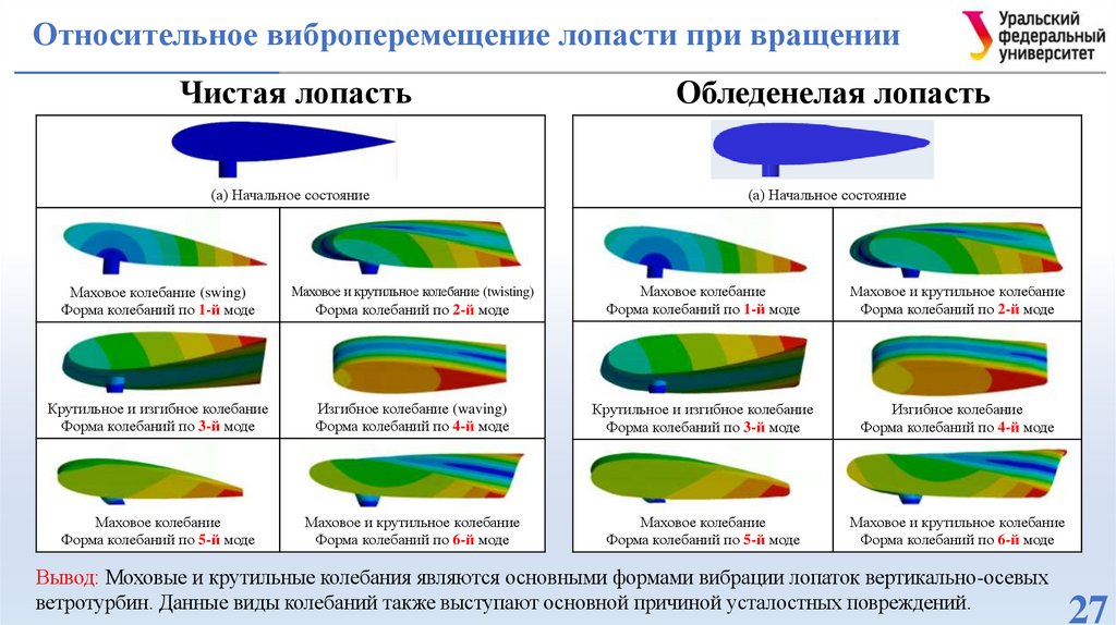 колебания лопасти в условиях