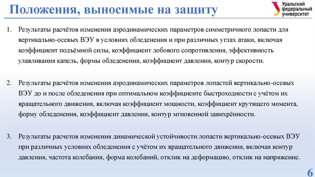 Положения, выносимые на защиту1. Результаты расчётов изменения аэродинамических параметров симметричного лопасти для