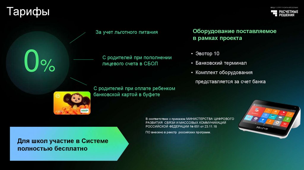 Безналичная оплаты питания в школьных столовых (далее Система) Родителям и сотрудникам школ предоставляется