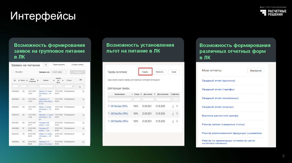 Ввод меню в систему и привязка тарифов к льготным комплексам