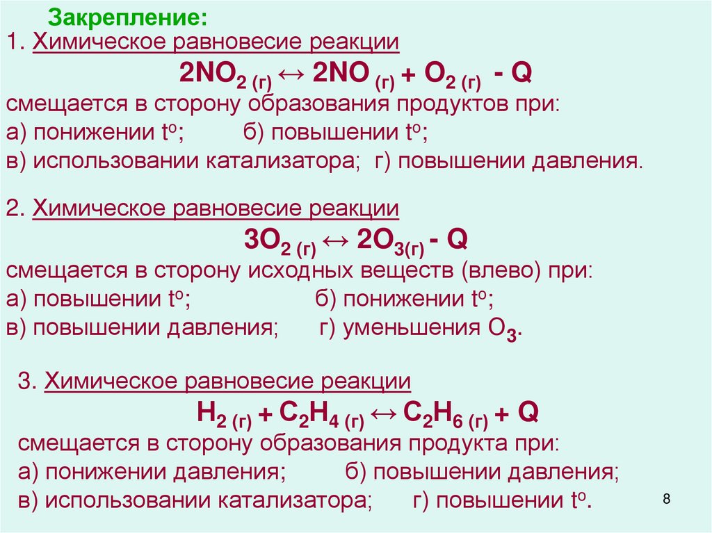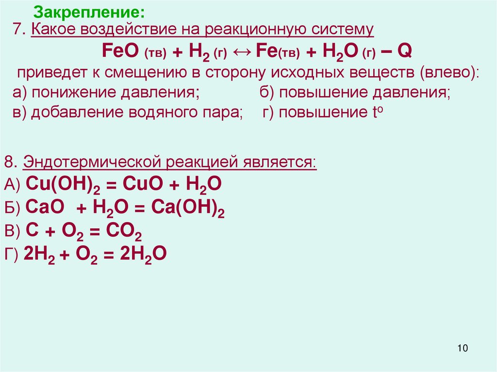 Закрепление:7. Какое воздействие на реакционную систему