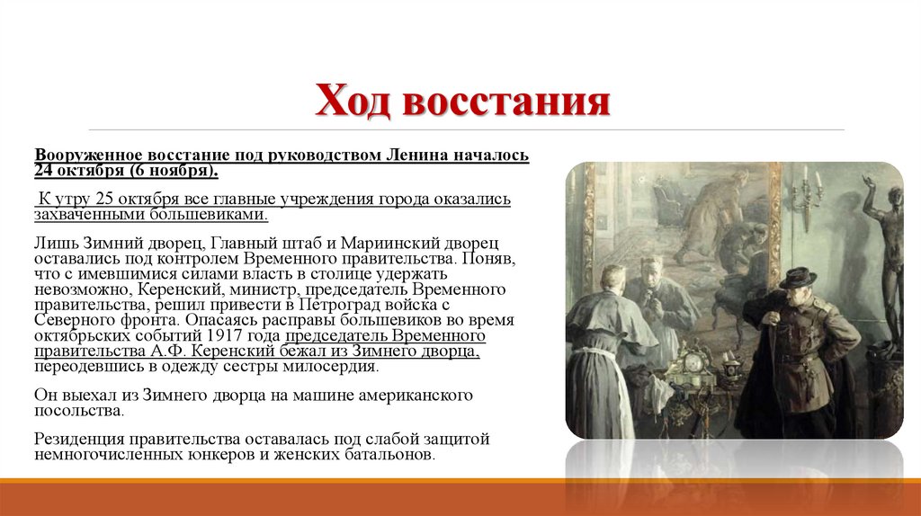 Ход восстанияВооруженное восстание под руководством Ленина началось