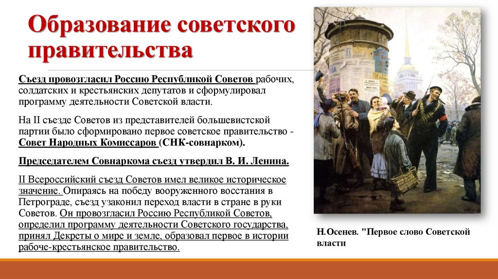 Образование советскогоправительства