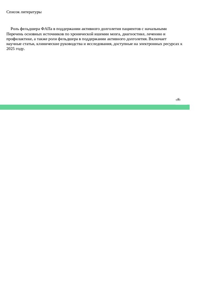 Список литературыРоль фельдшера ФАПа в поддержании активного долголетия пациентов с начальными