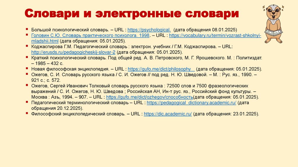 Словари и электронные словариБольшой психологический словарь. – URL : https://psychological. (дата обращения 08.01.2025)