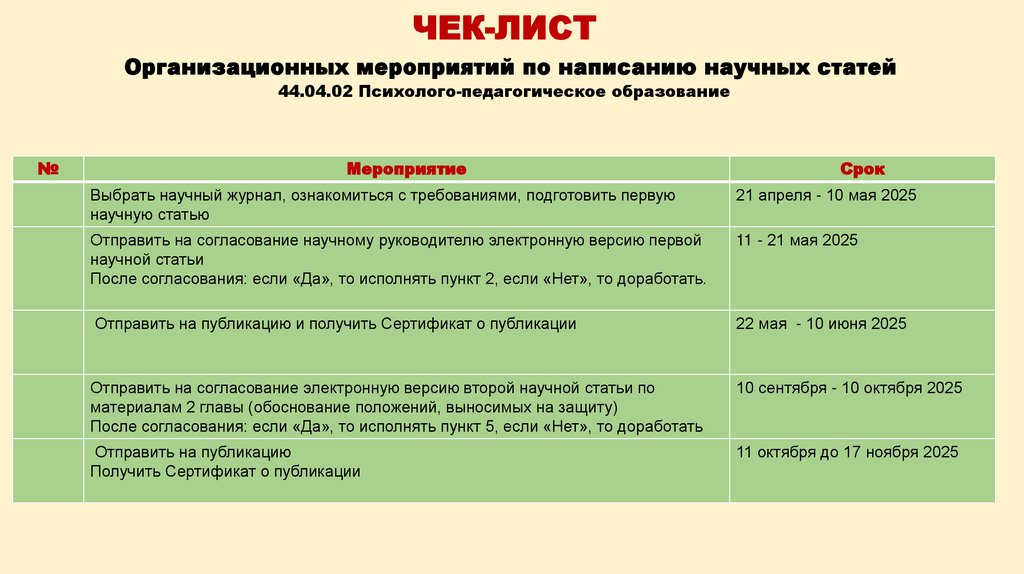 ЧЕК-ЛИСТОрганизационных мероприятий по написанию научных статей