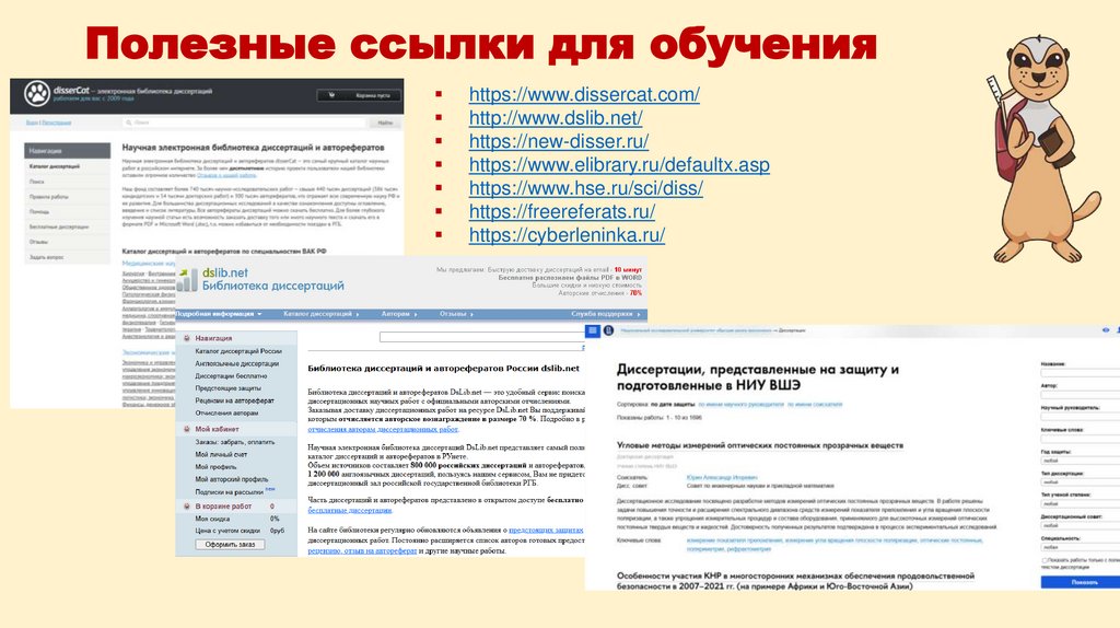 Полезные ссылки для обученияhttps://www.dissercat.com/