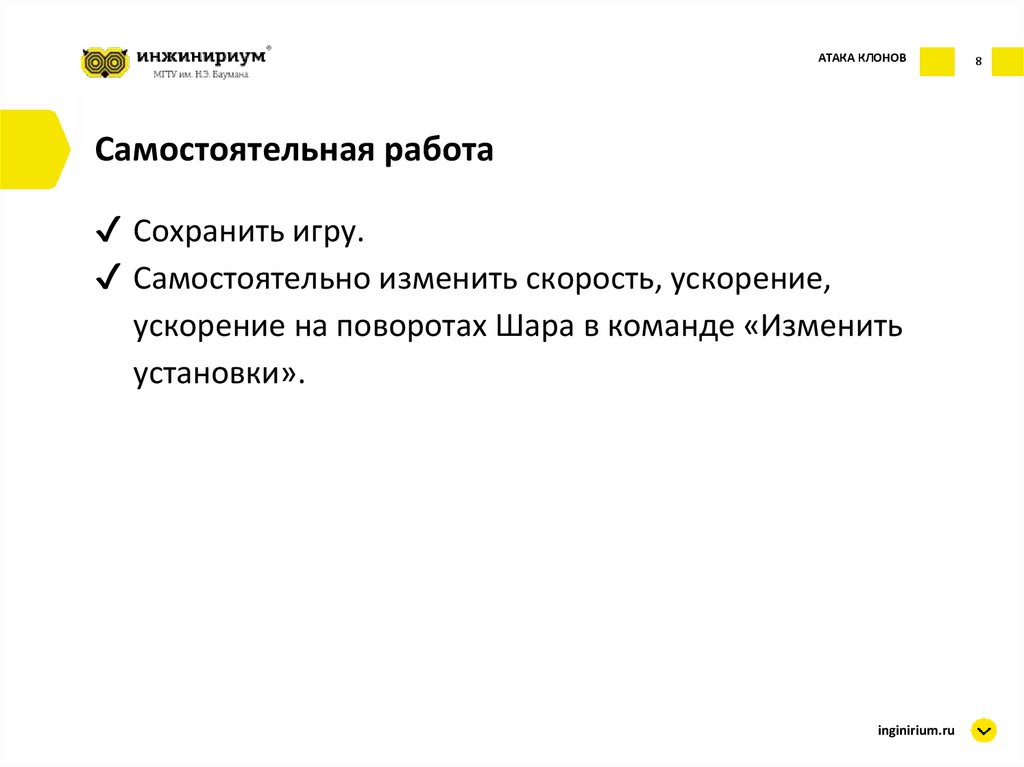 то игра проиграна. Шар должен быть запрограммирован на движение и