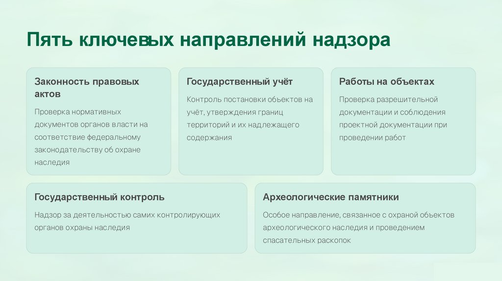 Основные направления прокурорского надзора за исполнением законов об охране объектов культурного наследия