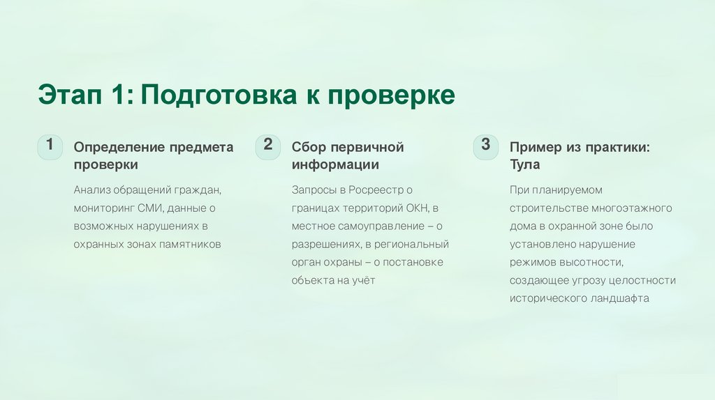 нормативной базы, формирование плана проверки и комплексное истребование документов.