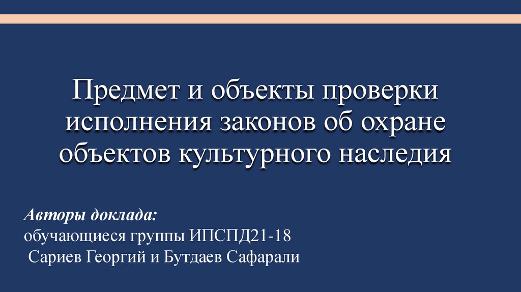 1. Предмет и объекты проверки исполнения законов об охране объектов культурного наследия