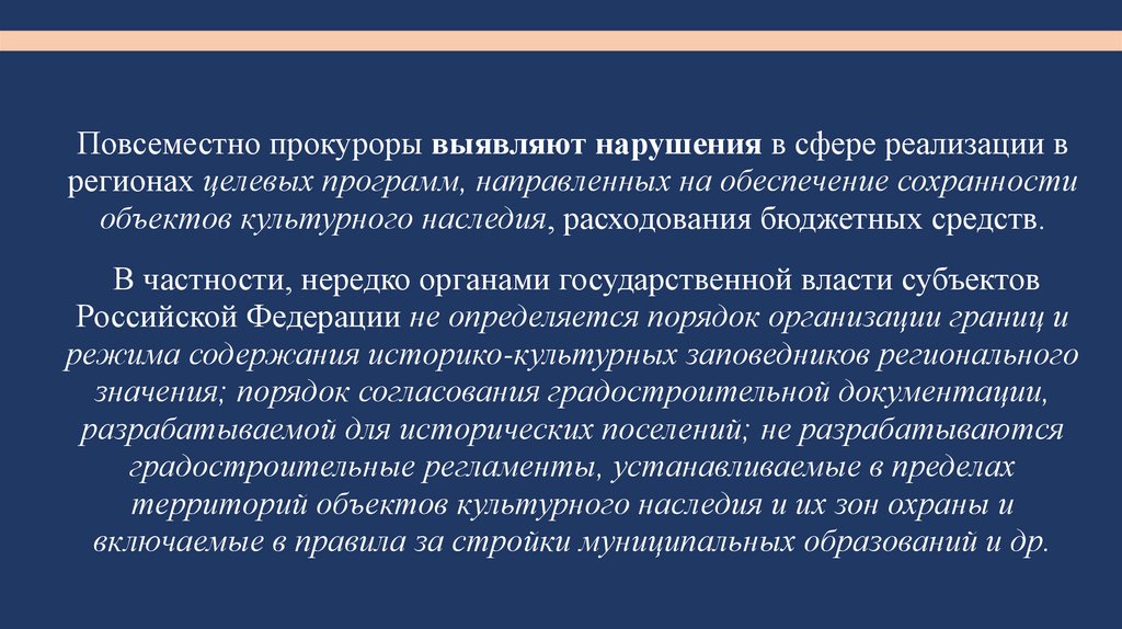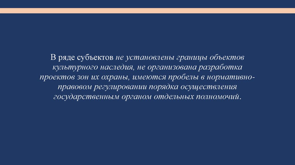 В ряде субъектов не установлены границы объектовкультурного наследия, не организована разработка