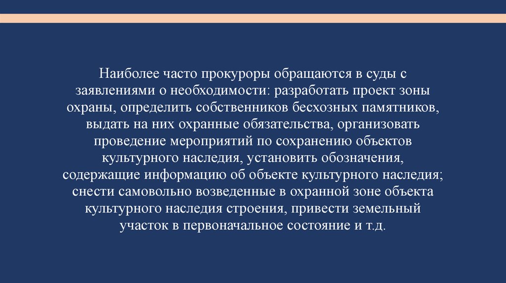 Наиболее часто прокуроры обращаются в суды сзаявлениями о необходимости: разработать проект зоны