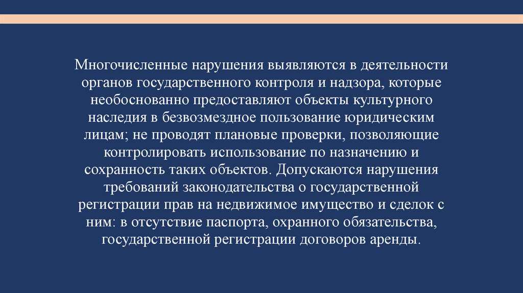 Многочисленные нарушения выявляются в деятельностиорганов государственного контроля и надзора, которые