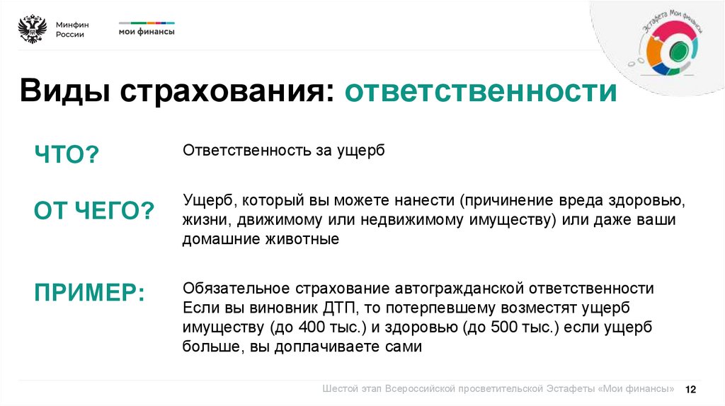 имуществу (до 400 тыс.) и здоровью (до 500 тыс.) если ущерб