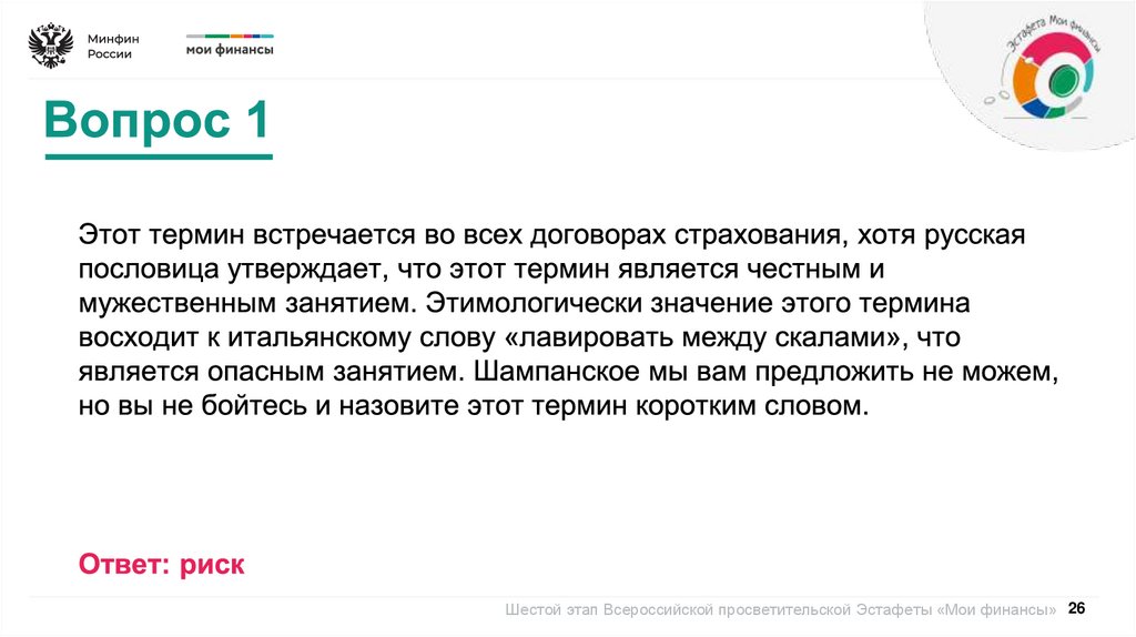 Шестой этап Всероссийской просветительской Эстафеты «Мои финансы» 2627.
