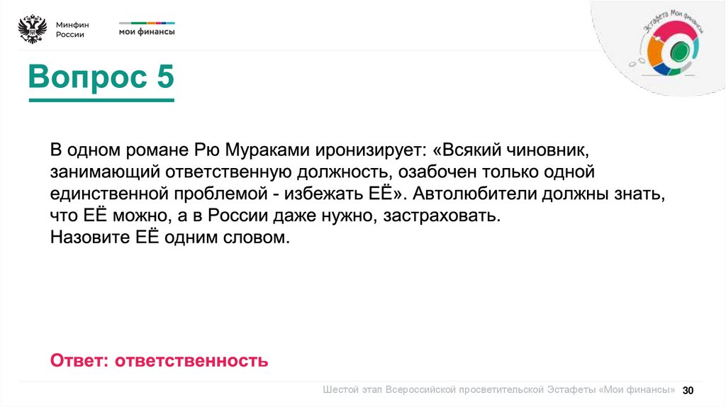 Шестой этап Всероссийской просветительской Эстафеты «Мои финансы» 2930.