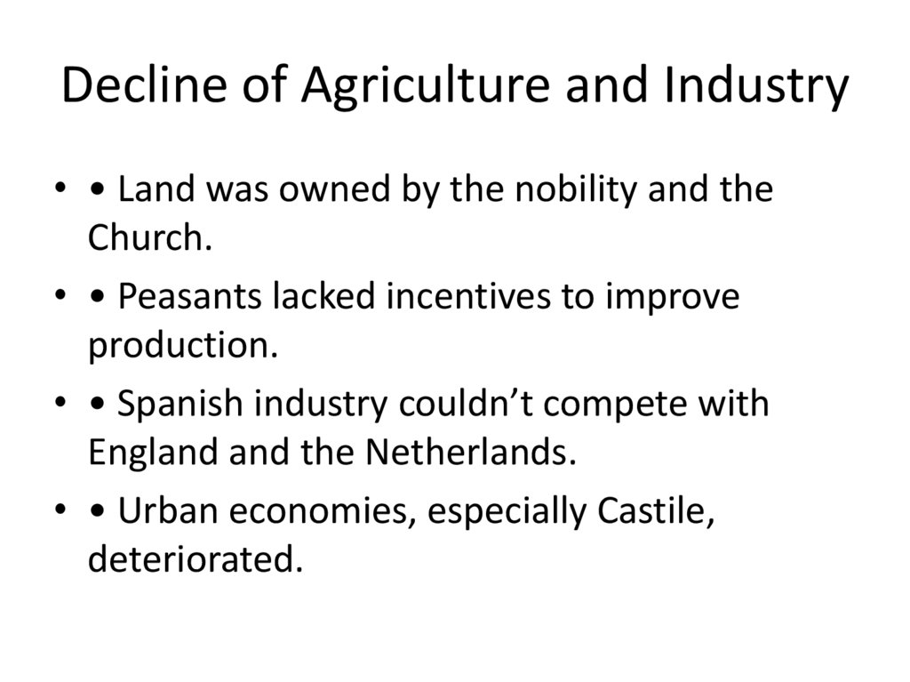 Decline of Agriculture and Industry• • Land was owned by the nobility and the