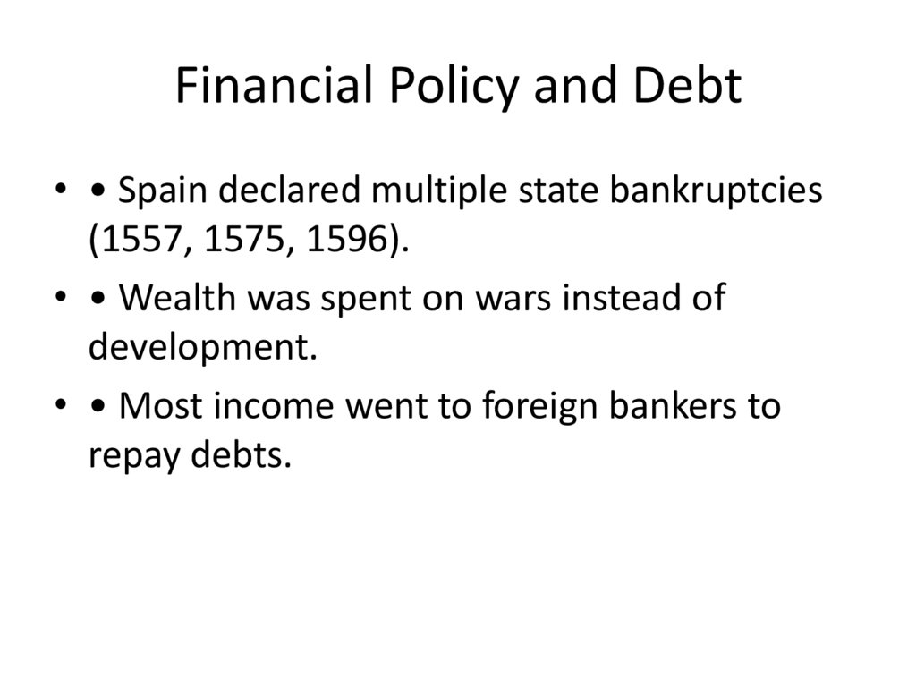 Financial Policy and Debt• • Spain declared multiple state bankruptcies