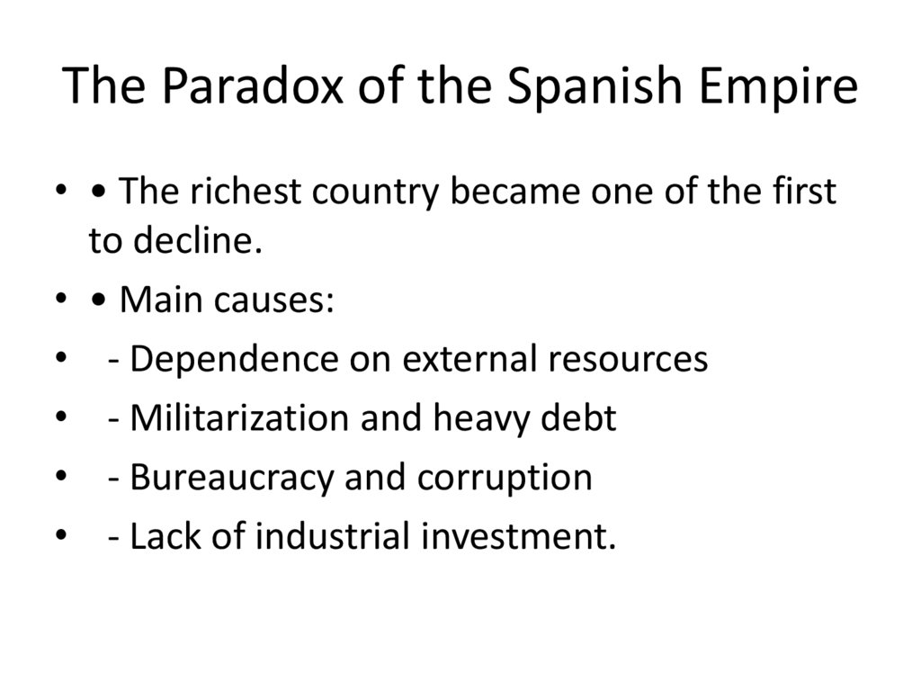 The Paradox of the Spanish Empire• • The richest country became one of the first