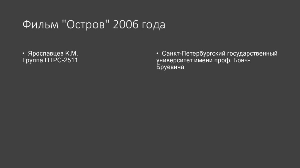 Фильм "Остров" 2006 года• Ярославцев К.М.
