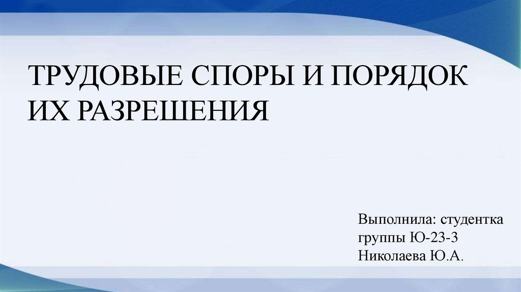 ТРУДОВЫЕ СПОРЫ И ПОРЯДОКИХ РАЗРЕШЕНИЯ