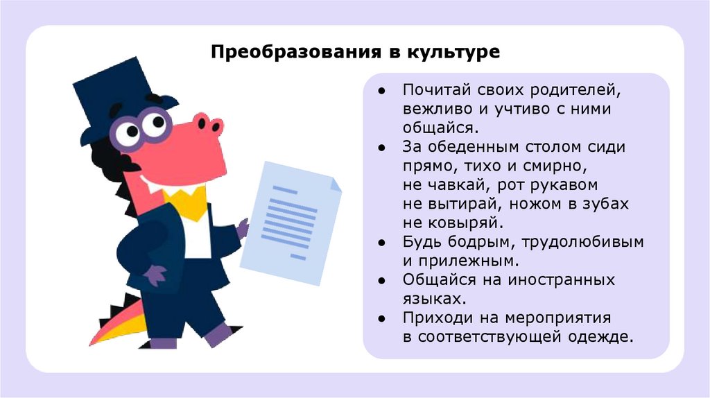 29. Задание - подготовить проект на тему: «Петровские преобразования в культуре, науке, быту»