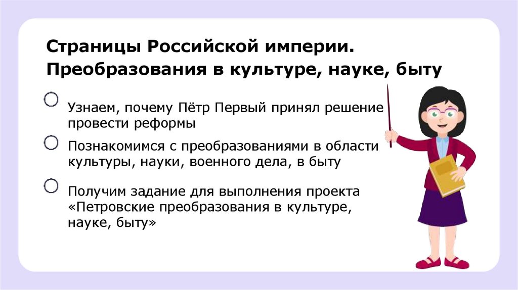 Страницы Российской империи.Преобразования в культуре, науке, быту
