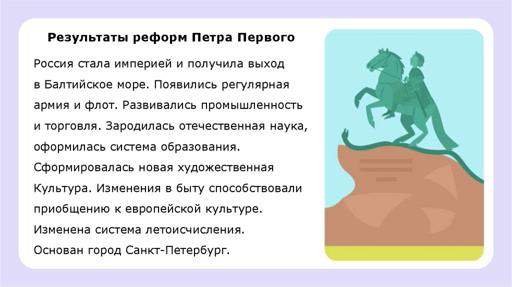 Результаты реформ Петра ПервогоРоссия стала империей и получила выход