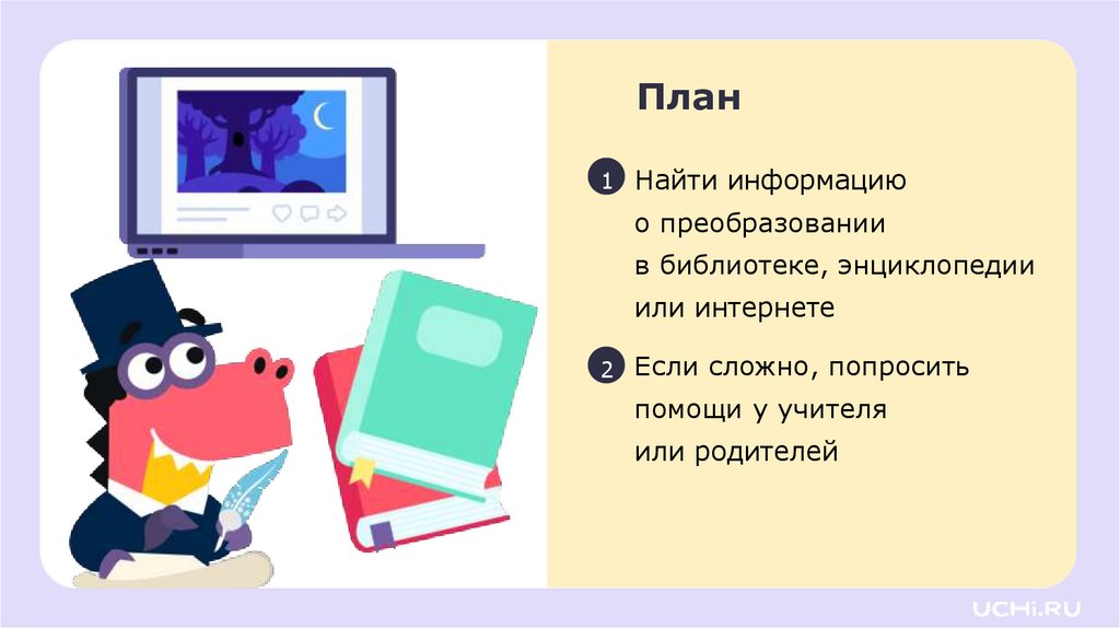 31. Сначала нужно найти информацию в библиотеке, энциклопедии или интернете. Давай поищем вместе! А если не справимся, то попросим