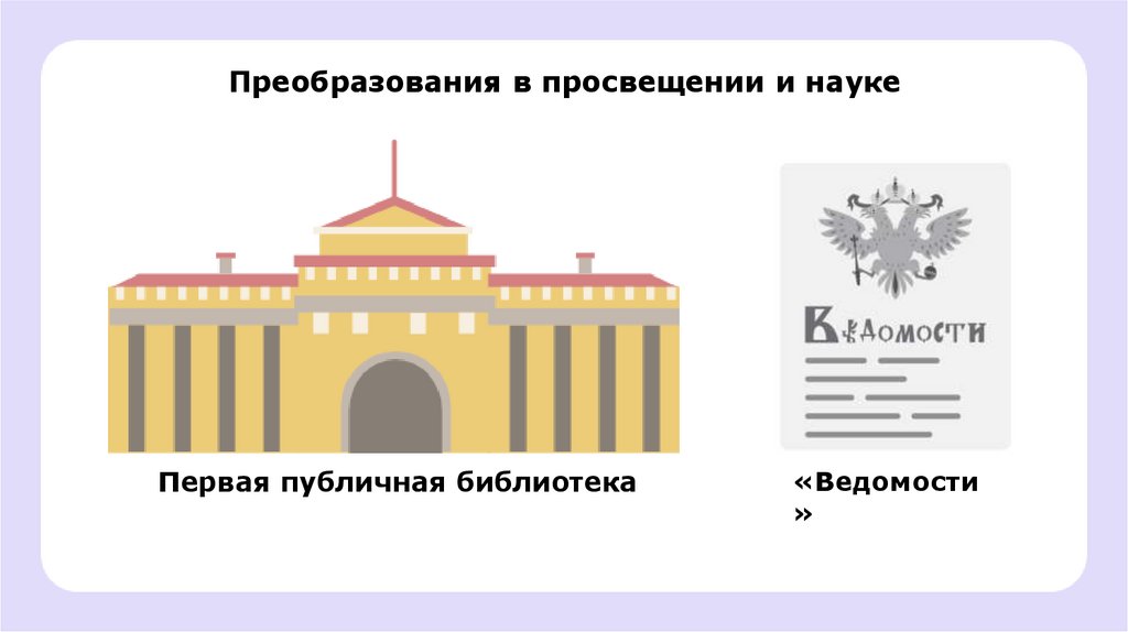 Преобразования в просвещении и наукеПервая публичная библиотека
