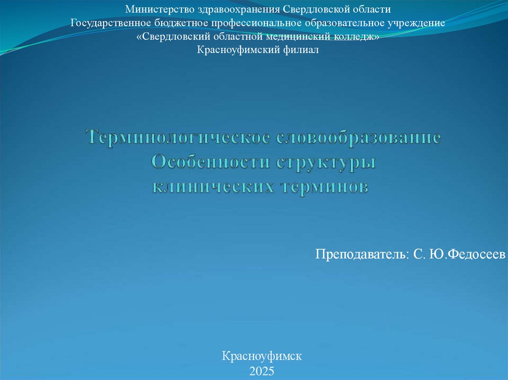Министерство здравоохранения Свердловской областиГосударственное бюджетное профессиональное образовательное учреждение