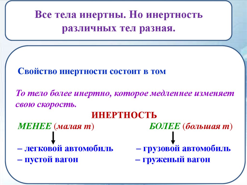 1. Инерция. Закон инерции. Взаимодействие тел как причина изменения скорости движения тел