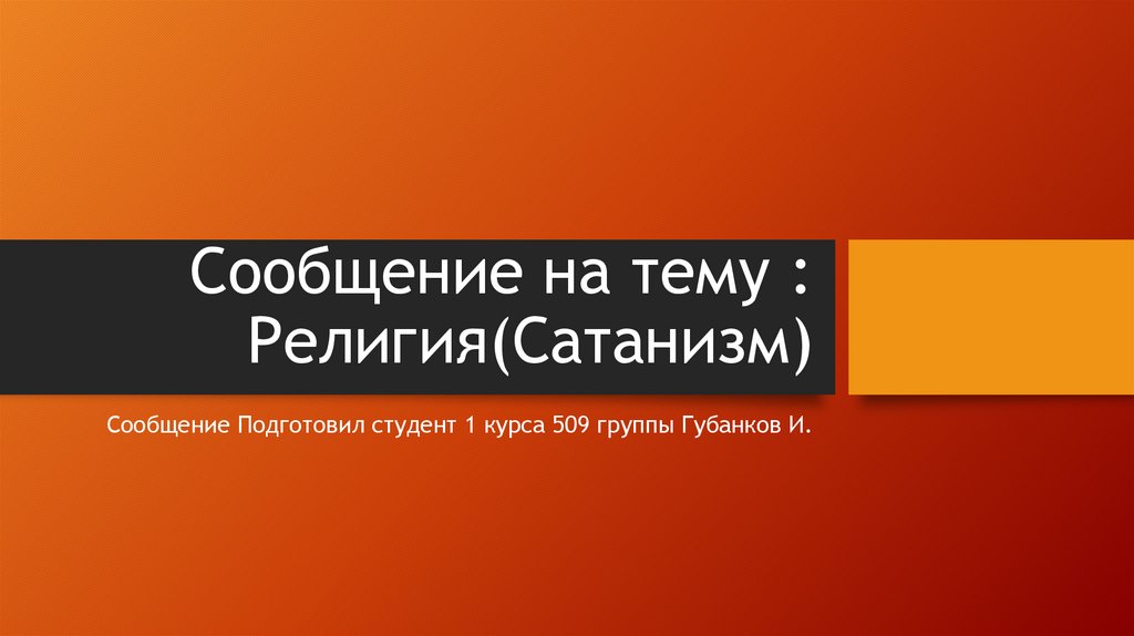 Сообщение Подготовил студент 1 курса 509 группы Губанков И.2. Что такое сатанизм ?