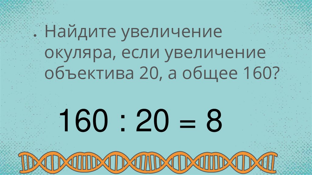 16. Найдите увеличение объектива, если увеличение окуляров 40, а общее 200?